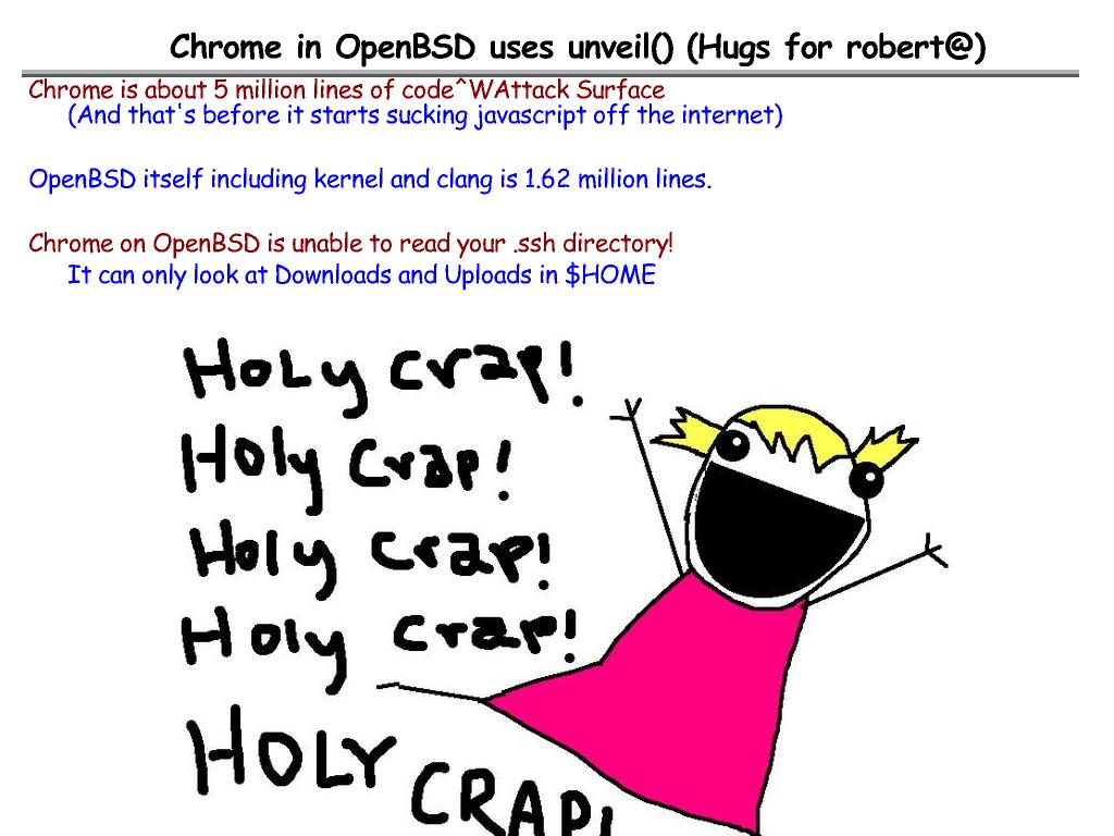 Page 22: Chrome in OpenBSD uses unveil() (Hugs for robert@)